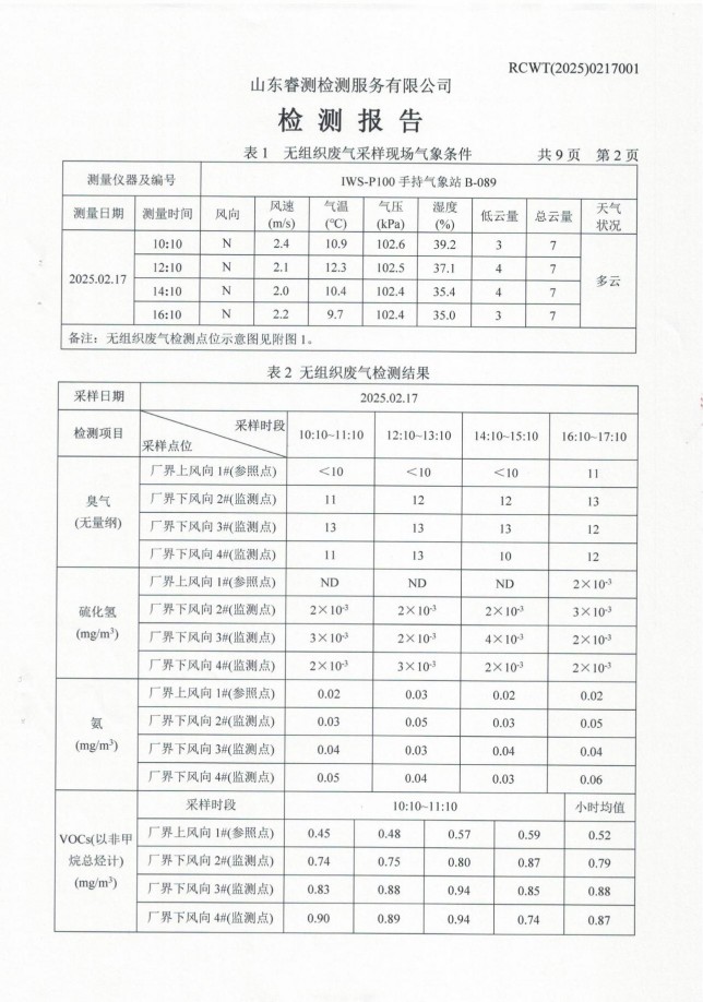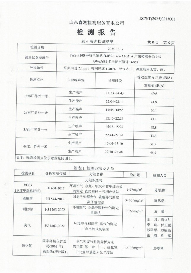 2025年第一季度廢氣、噪聲檢測報(bào)告